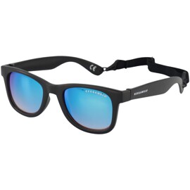 Seje sorte solbriller til dit barn. Bløde og fleksible i silikone for at klare børnenes uforsigtige behandling. Elastiksnor til at sætte rundt om hovedet, så de bliver siddende på plads. Snoren er aftagelig gennem spænder yderst på stængerne og justerbar for perfekt pasform.