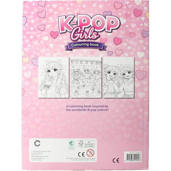 K-POP Girls er en inspirerende malebog fyldt med charmerende illustrationer af K-POP-inspirerede piger. Motiverne er præget af søde detaljer og en legende idolæstetik, der passer perfekt til alle, der elsker K-POP.