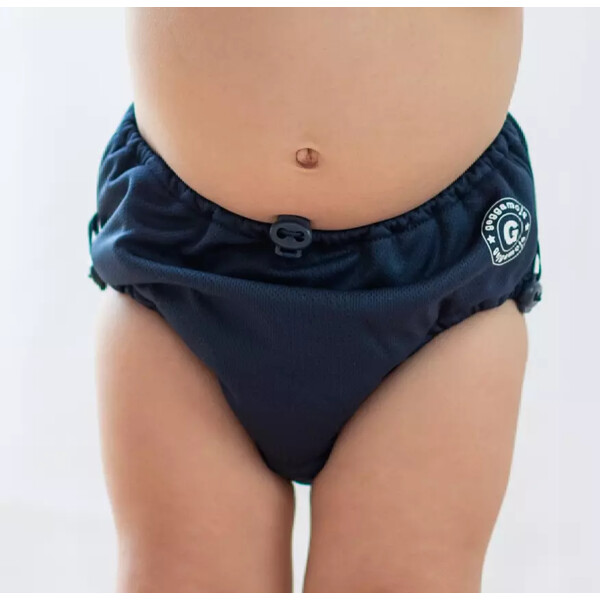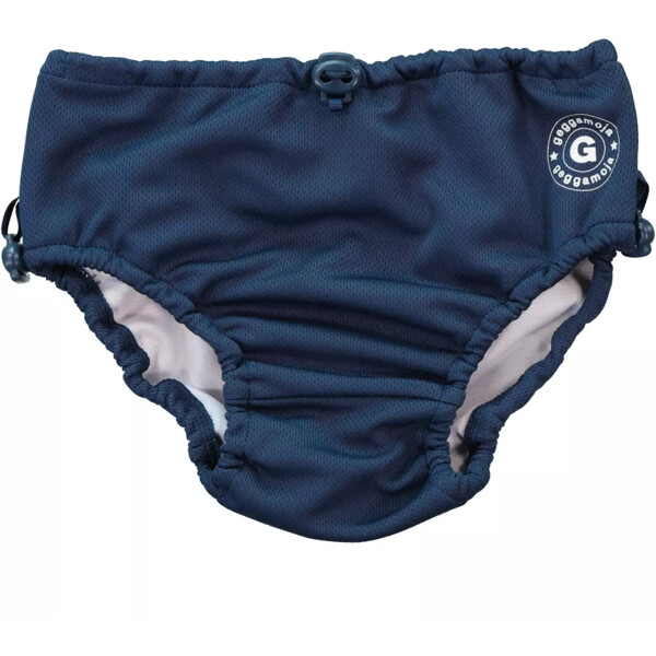 Geggamojas UV babybuks, med UV50+ blokerer 98% af solens farlige UVA- og UVB-stråler. Justerbar elastik med snøre i taljen og i benåbningen for at sikre, at den sidder behageligt og holder tæt, selv når den er våd. Denne badebuks er perfekt til babysvømning. Der er ikke behov for ekstra ble eller indlæg under badebleen.