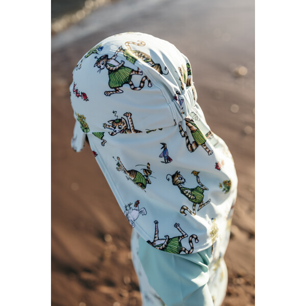 UV-hat med Pettson & Findus-print fra Geggamoja. Elastik bagpå for bedste pasform.