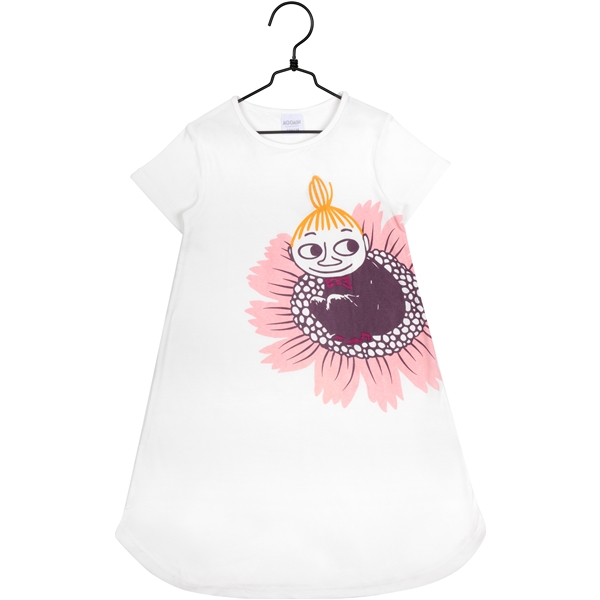 En blød og skøn natkjole i en benhvid farve med korte ærmer og et stort Lille My-tryk fortil. Natkjolen har en rund halsudskæring og en smukt afrundet kant forneden.
