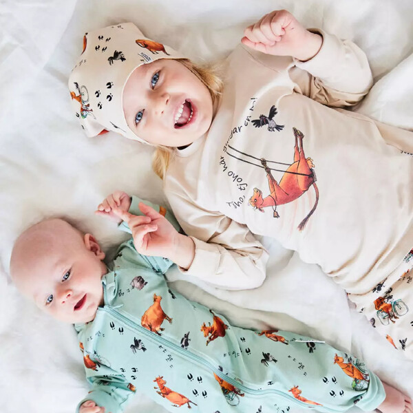 Todelt pyjamas med Mamma Mu i blød og behagelig økologisk bomuld. Pyjamasen består af et par bukser med elastik i taljen og brede manchetter samt en langærmet trøje også med manchetter.