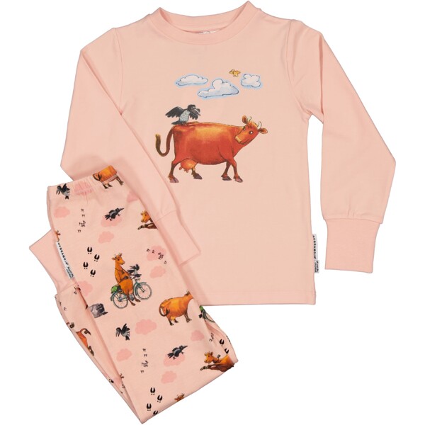 Todelt pyjamas med Mamma Mu i blød og behagelig økologisk bomuld. Pyjamasen består af et par bukser med elastik i taljen og brede manchetter og en langærmet trøje også med manchetter.