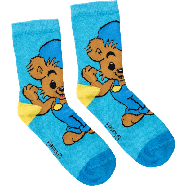 Farverige Bamse strømper til børn. Fremstillet i elastisk bomuldsblanding.