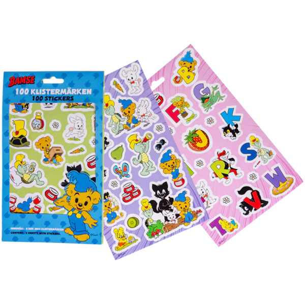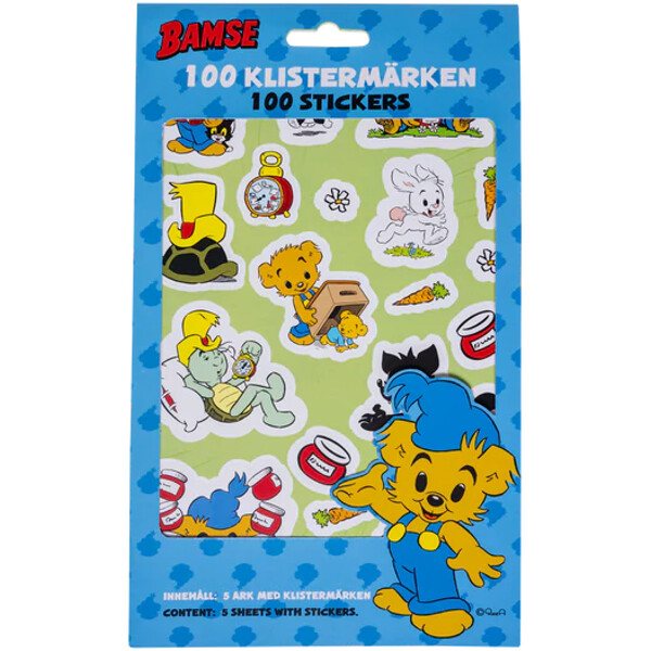 Bamse klistermærker 5 ark med i alt 100 klistermærker.