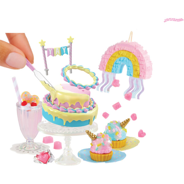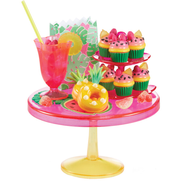 Hver kapsel indeholder miniaturer, der passer til et af de 3 forskellige trendy festtemaer: Tropisk, Dino og Regnbue. Hvert tema vil have 3-5 kugler, som du skal jage for at gøre festen komplet. 3 kugler indeholder mad/drikke, der passer til temaet, og 1 kugle indeholder dekorationsdele til temaet.