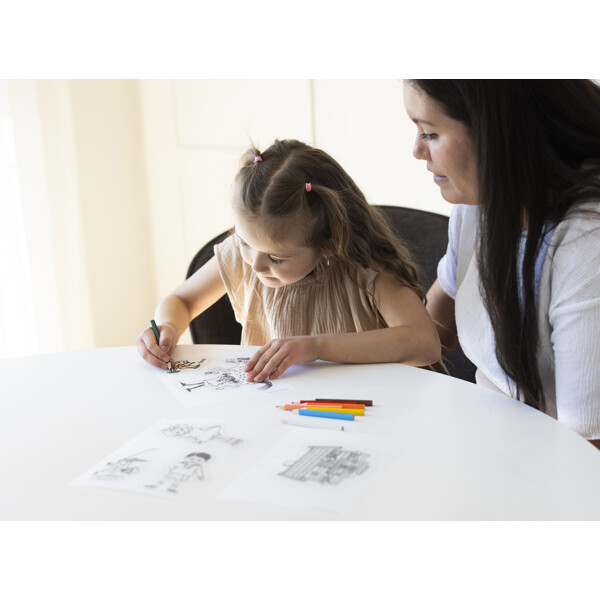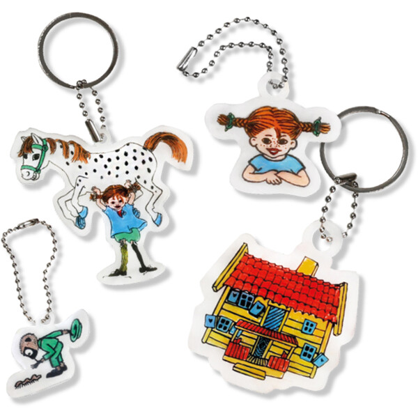Sættet indeholder fire ark krympeplast med syv motiver, ti tuscher, to nøgleringe og ni kæder. Alt hvad der behøves for et kreativt og sjovt hobbyarbejde til alle små Pippi-elskere!