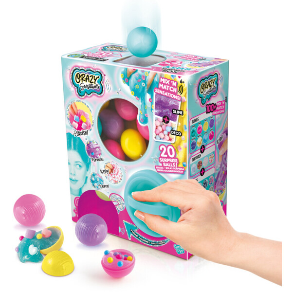 Leg med 20 bolde og oplev slime med unikke teksturer og dekorationstyper for den ultimative ASMR-sensoriske oplevelse. Boksen er genanvendelig.