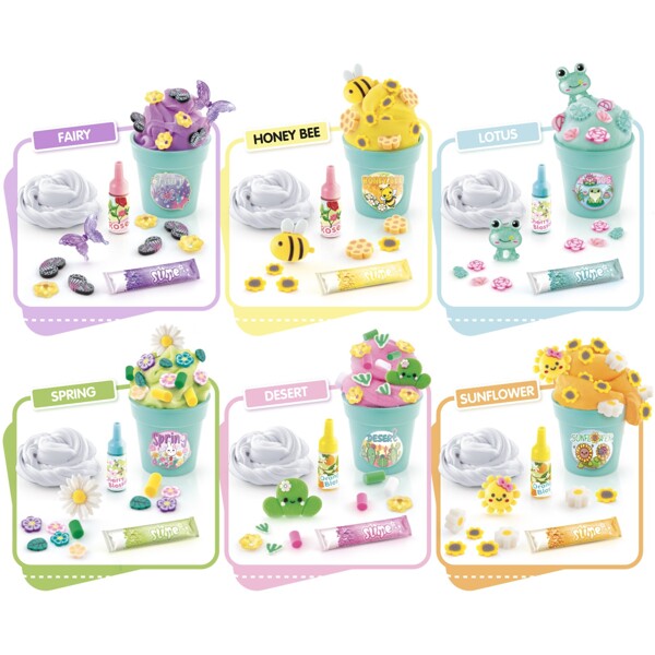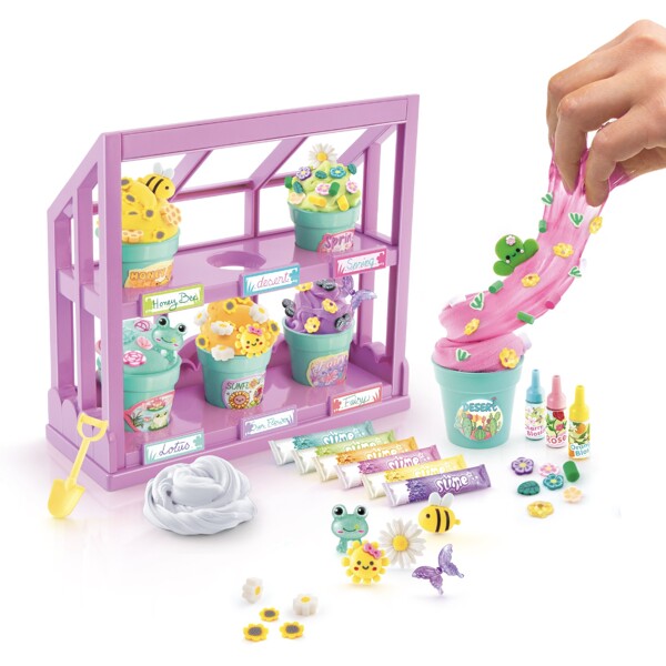 Skab farverige og duftende slime med tre unikke konsistenser. Tilføj dekorationer og opbevar dine kreationer i seks søde blomsterpotter i et charmerende drivhus.