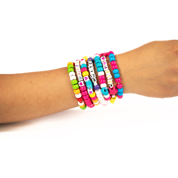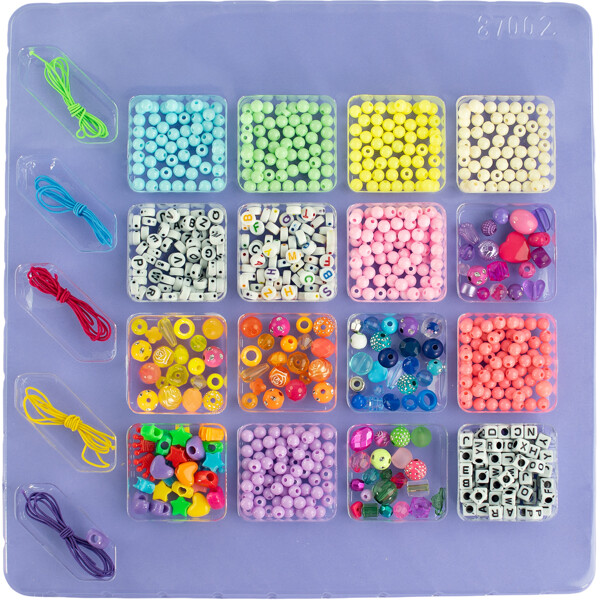 Smykkesætet indeholder alle materialer til at skabe venskabsarmbånd, armbånd og halskæder. I alt 800 perler, inklusive forskellige bogstavperler, pastelfarvede perler, glitrende perler og 3 m elastisk gummibånd.