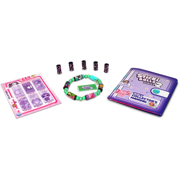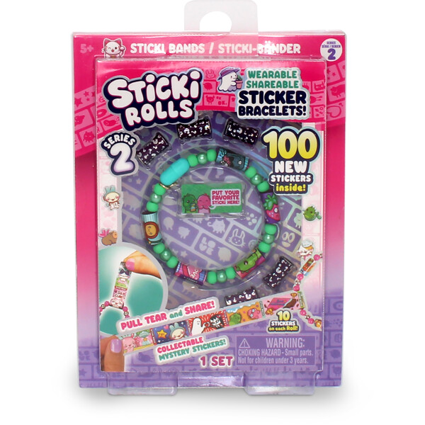 Sticki Rolls Sticki Series 2 er her! Med hele 1.200 helt nye klistermærker at samle på – nye designs, nye karakterer og desuden et comeback af nogle fanfavoritter fra serie 1! Derudover er der fem helt nye holografiske stilarter at samle på, i alle sjældenhedsniveauer.Glem klistermærkeark – med Sticki Rolls forvandles klistermærkelegen til trendy accessories! Hvert Sticki Band-armbånd rummer 5 ruller med klistermærker, og hver rulle indeholder 10 unikke Kawaii-inspirerede designs. Træk, drej og klæb – enkelt og sjovt!Derudover medfølger to hemmelige Mystery Reveal Sticki Rolls, hvilket giver i alt 70 klistermærker i hvert sæt! Dekorér din mobil, vandflaske eller laptop – eller byt med venner for at bygge din samling. Med det unikke Quick-Grip Clasp-system er det supernemt at skifte ruller og skabe uendelige kombinationer.