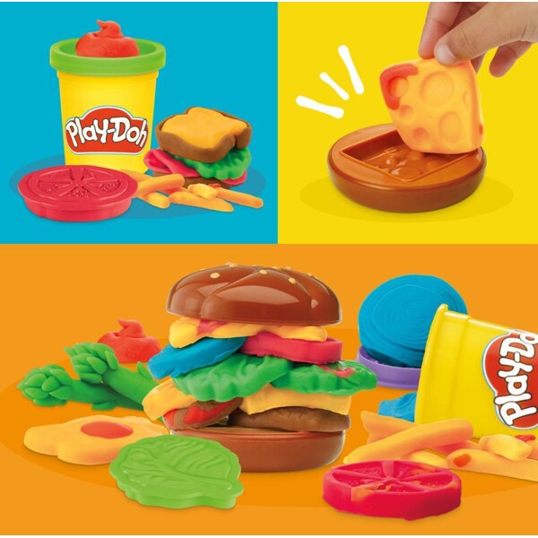 Med Grill Fun-legetøjsættet kan børn slippe deres kreativitet løs ved at bygge deres egen Play-Doh-burger.
