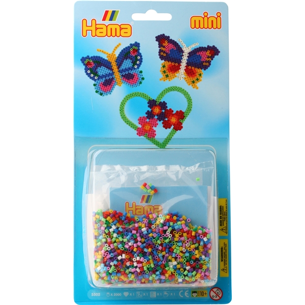 Med ca. 2.000 Mini-perler, 1 hjerteformet perleplade, designskabelon, instruktioner og strygepapir.