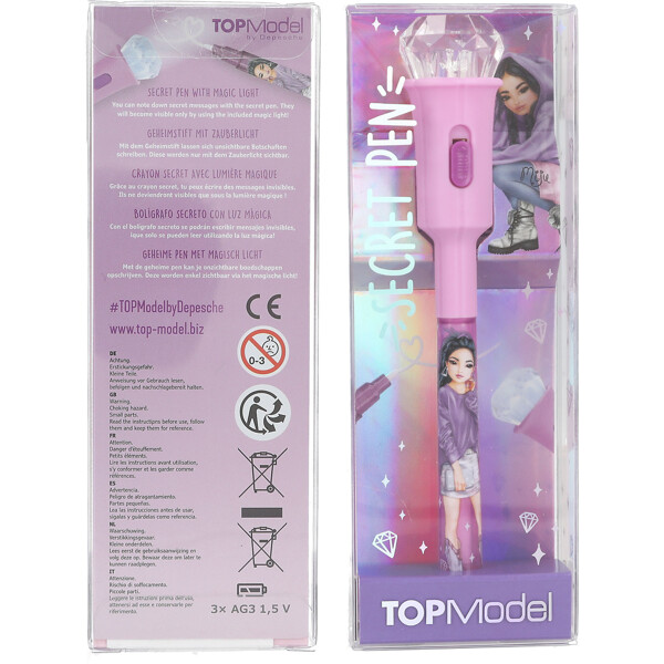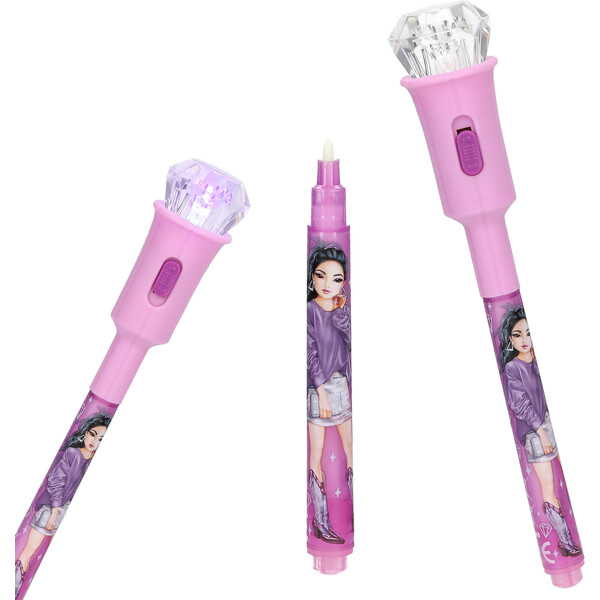 TOPModel-pennen til hemmelige beskeder skriver med usynligt blæk, som først bliver synligt, når det belyses med diamantens UV-lys.