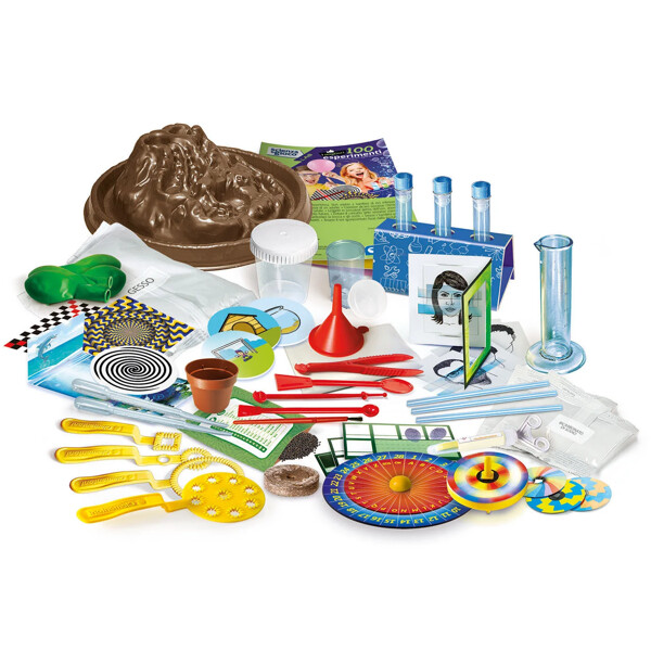 Denne store eksperimentkasse fra Clementoni indeholder alt, hvad du behøver for at dykke ned i videnskabens verden, med 100 forskellige eksperimenter, der dækker kemi, fysik, botanik og optik. Uanset om du eksperimenterer indendørs eller udendørs, vil du nyde at observere fascinerende fænomener og reaktioner.