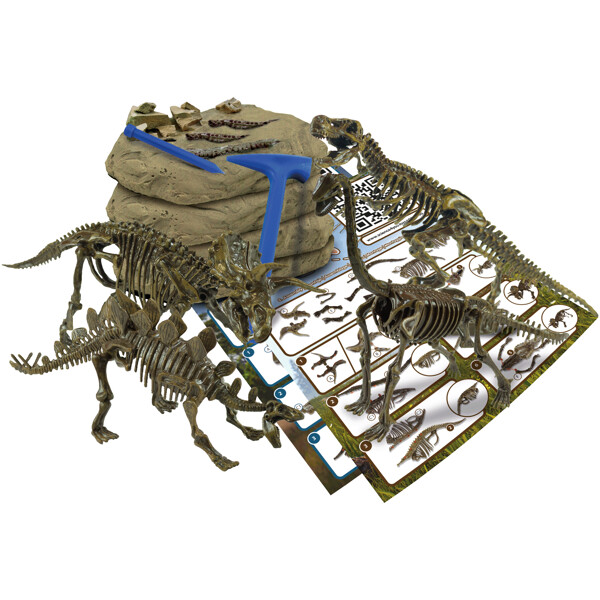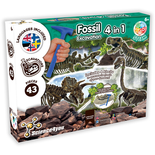 Udforsk den fascinerende verden af palæontologi ved at opdage 4 fantastiske fossiler: Triceratops, T-Rex, Stegosaurus og Velociraptor. Lær om fossiler, dinosaurernes udryddelse og professionelle udgravningsteknikker.