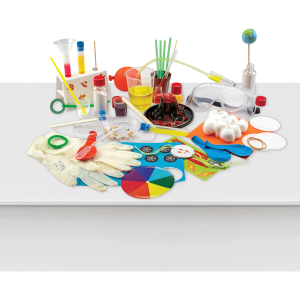 Lav seje kemiske reaktioner, simuler et vulkanudbrud, nar dine venner med optiske illusioner, affyr en kemisk raket og mange flere eksperimenter!