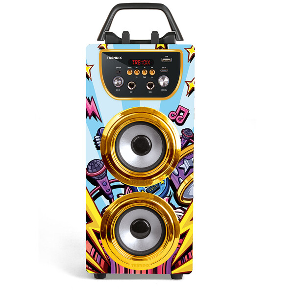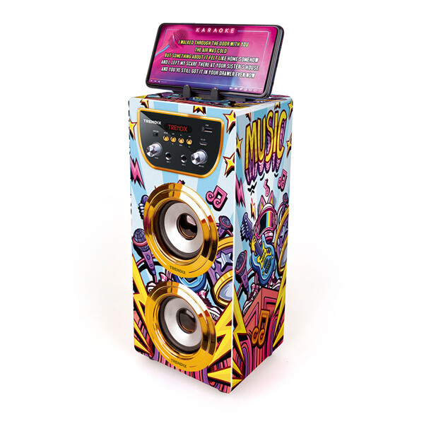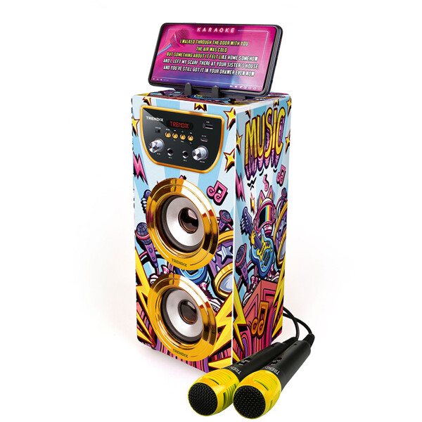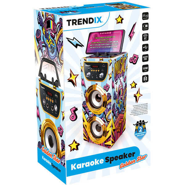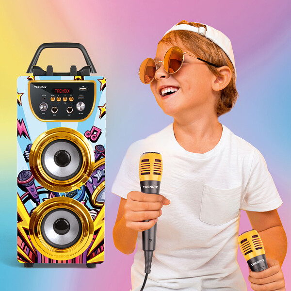 Klar til grin, sang og showtime? Med Trendix Karaoke Maskine får hele familien en sjov aktivitet at samles om – perfekt til fredagshyggen, børnefødselsdagen eller regnfulde dage indendørs!Funktioner børn (og voksne!) elsker:To mikrofoner – syng duetter med søskende, venner eller forældre!10W højttaler – klart og kraftfuldt lyd, der fylder rummet.Bluetooth-forbindelse – afspil jeres yndlingssange direkte fra mobilen eller tablet.FM-radio – lyt til jeres yndlingsudsendelser direkte i maskinen.Ekko-effekt – giv sangen et professionelt og sjovt touch.Kobl flere enheder sammen – få endnu større lyd og flere til at synge med!Telefonholder – perfekt til at følge sangtekster eller playlister direkte fra skærmen.Bærbar med håndtag – let at tage med mellem børneværelset, stuen eller til bedsteforældrene.Oplades med USB-C – praktisk, hurtigt og kompatibelt med dagens opladere.Trendix Karaoke Maskine er nem at bruge, robust nok til små hænder og fuld af musikglæde. Uanset om det er små stjerner eller hele familiebandet, der optræder – med Trendix bliver hver dag lidt festligere!
