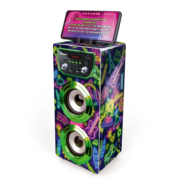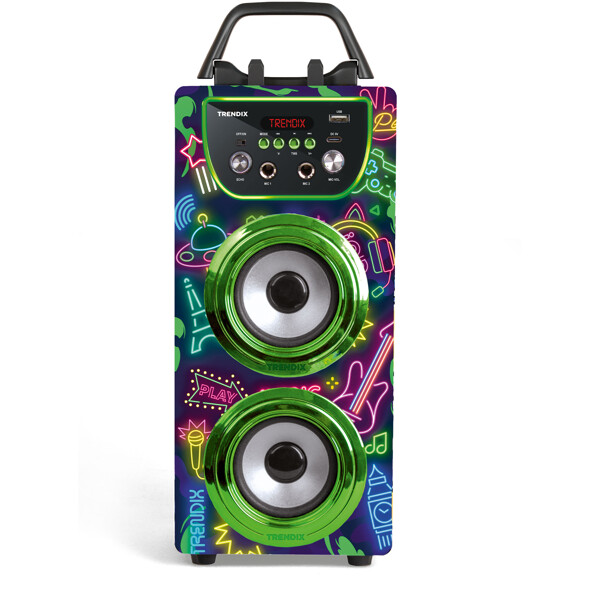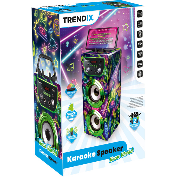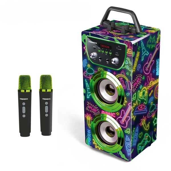Klar til grin, sang og showtime? Med Trendix Karaoke Maskine får hele familien en sjov aktivitet at samles om – perfekt til fredagshyggen, børnefødselsdagen eller regnfulde dage indendørs!Funktioner børn (og voksne!) elsker:To trådløse mikrofoner – syng duetter med søskende, venner eller forældre!10W højttaler – klart og kraftfuldt lyd, der fylder rummet.Bluetooth-forbindelse – afspil jeres yndlingssange direkte fra mobilen eller tablet.FM-radio – lyt til jeres yndlingsudsendelser direkte i maskinen.Ekko-effekt – giv sangen et professionelt og sjovt touch.Kobl flere enheder sammen – få endnu større lyd og flere til at synge med!Telefonholder – perfekt til at følge sangtekster eller playlister direkte fra skærmen.Bærbar med håndtag – let at tage med mellem børneværelset, stuen eller til bedsteforældrene.Oplades med USB-C – praktisk, hurtigt og kompatibelt med dagens opladere.Trendix Karaoke Maskine er nem at bruge, robust nok til små hænder og fuld af musikglæde. Uanset om det er småstjerner eller hele familiebandet, der optræder – med Trendix bliver hver dag lidt festligere!
