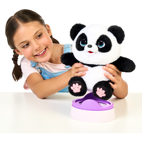 Little Live Pets Min Baby Panda! ChuChu, den lille panda, er det mest bedårende babydyr, du nogensinde har set! ChuChu opfører sig og lyder præcis som en rigtig babypanda, med over 50 lyde og reaktioner.Fodr og tag dig af ChuChu med bambusfodringstilbehøret! Når han er mæt og klar til at lege, sparker han sine bedårende små fødder!Når det er tid, sæt ChuChu på potten og se ham lave en lille potte-dans, mens han sparker med fødderne! Opdag afføringen i potten og skyl det væk for at lege igen!ChuChu elsker at blive kildet og vugget i søvn – han reagerer præcis som en rigtig baby. Fodr, elsk, tag dig af og leg med din babypanda, og snart vil ChuChu blive deres mest elskede bedste ven!Indeholder:1 x Interaktiv Krammepanda1 x Potte1 x Bambusfodringstilbehør3 x AA-batterier1 x Adoptionsbevis1 x Instruktionsbog