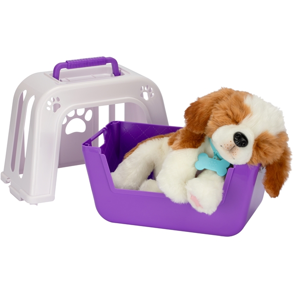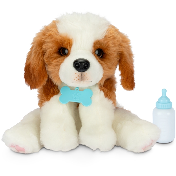 Little Live Pets My Really Real Puppy - Patches er den mest virkelighedstro hvalp, du nogensinde har set! Patches ser ud og føles så rigtig med den blødeste pels, sødeste blinkende øjne, og reagerer på din berøring og fodring med over 60 lyde og reaktioner.My Really Real Puppy vil være din trofaste ven for altid - de er så realistiske med pels, der er blød ved berøring, blinkende øjne og foldede poter, der gør, at denne interaktive hvalp føles så virkelig! Klap Patches på hovedet eller ryggen, så vil han lave glade lyde og blinke med øjnene. Patches kommer med en hvalpeflaske og elsker at blive fodret - tryk forsigtigt hvalpeflasken mod hans mund og lyt, når han lukker øjnene og laver søde fodringslyde.Hver hvalp er unik, der findes 72 forskellige varianter, med forskellige farvede øjne, halsbånd og et hemmeligt fødselsmærke!My Really Real Puppy kommer med en sød hvalpebur med håndtag, så du kan placere din hvalp indeni og bære den med dig, hvor end du går!Indhold:2 x AA-batterier1 x Instruktionsbog3 x Tilbehør1 x Elektronisk hvalp1 x Hvalpebur1 x Adoptionscertifikat