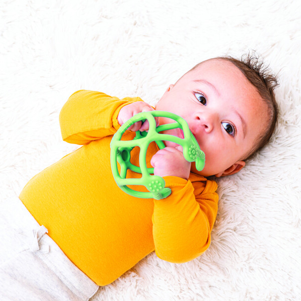 To bløde og fleksible silikonebolde i glade farver, der let sættes sammen til en grebs- og bidvenlig aktivitetsbold. Let at gribe for små hænder og desuden behagelig at bide i, når tænderne er på vej. Et kreativt design, der stimulerer barnets håndmotorik og opdagelsesglæde.Sæt med 2 silikonebolde100% silikone af høj kvalitetRengøres nemt med mild sæbeMål: stor bold ø 10 cm, lille bold ø 7 cm