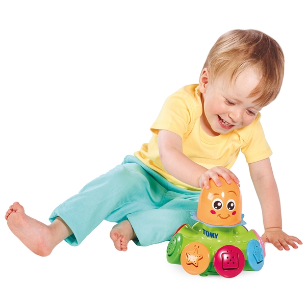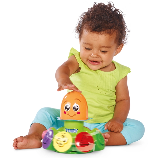 Tomy Sort Pop Spinning Top er et sjovt stykke legetøj til de små, som hjælper med at optræne motorik og sans for farve og form. Placer klodserne på det rigtige sted og tryk på blækspruttens hoved for at få den til at snurre rundt så klodserne flyver afsted.