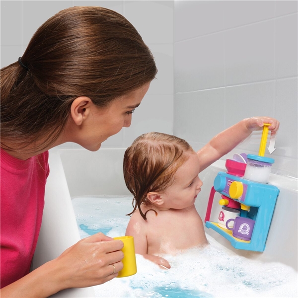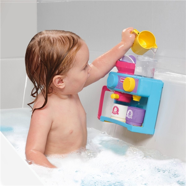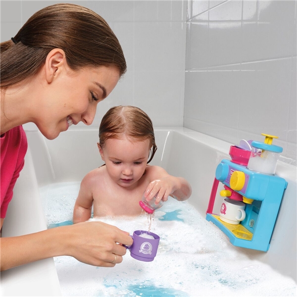 Med Bath Barista fra Toomies kan barnet tage yndlingscaféen med i badekarret. Små børn kan opleve det skønne ved at gå på café, som mange voksne holder af og kender til. Barnet kan nyde timevis af sjov og leg i badet mens der brygges en kop lege-cappuccino.