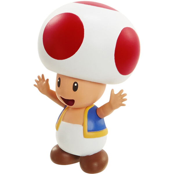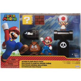 6 cm Diorama Set Acorn Plains tilbyder en herlig samling af ikoniske figurer fra Super Mario-universet. Dette sæt indeholder fem samlerfigurer: Bullet Bill, Yoshi, Question Box, Mario og Goomba, hver med tre ledpunkter.
