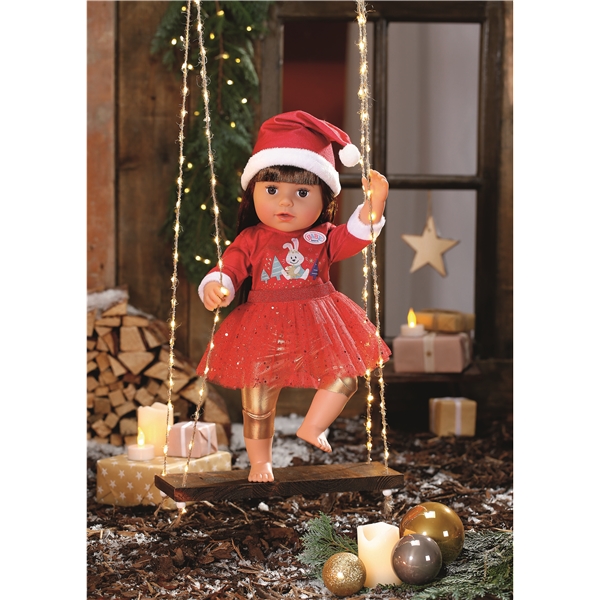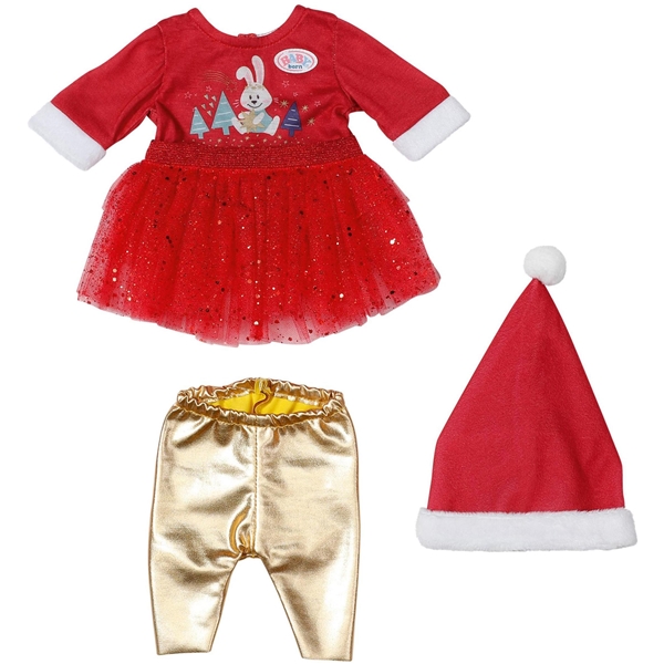 Indeholder:- BABY born-julesæt 43 cm med kjole, leggings og nissehue. Inkl. bøjle