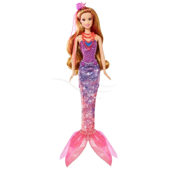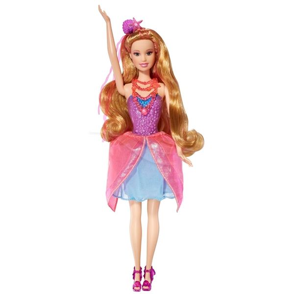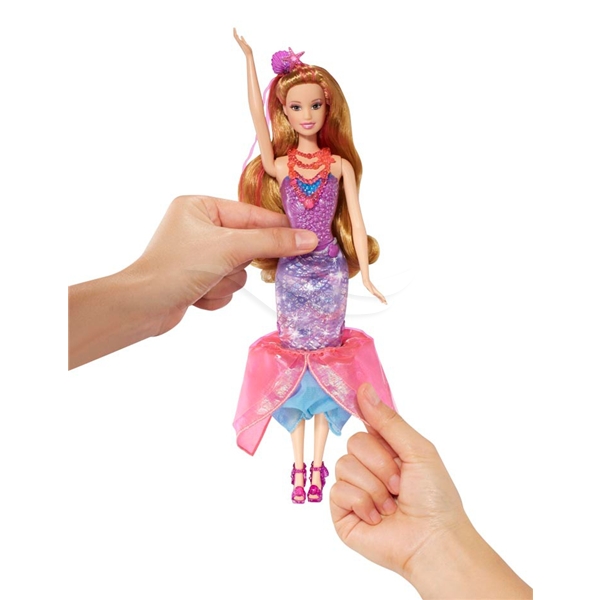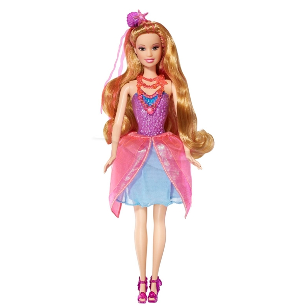 Barbie - Den Hemmelige Dør Forvandlingsdukke Lilla er en Barbie-dukke, der er inspireret af den kommende Barbie-film "Barbie og den hemmelige dør".I filmen "Barbie og den hemmelige dør" havner prinsesse Alexa i en magisk og farverig verden, der er fuld af fantastiske personligheder. Med disse dukker kan du genskabe øjeblikket hvor prinsesse Alexas nye venner oplever en fantastisk forvandling. Vælg mellem en fedukke og en havfruedukke. Fedukkens vinger foldes ud med et tryk på en knap mens havfruedukkens festkjole omdannes til en havfruehale med finner når du trækker i den. Hver Barbie - Den Hemmelige Dør Forvandlingsdukke har også en halskæde og håraccessories i klare neonfarver.