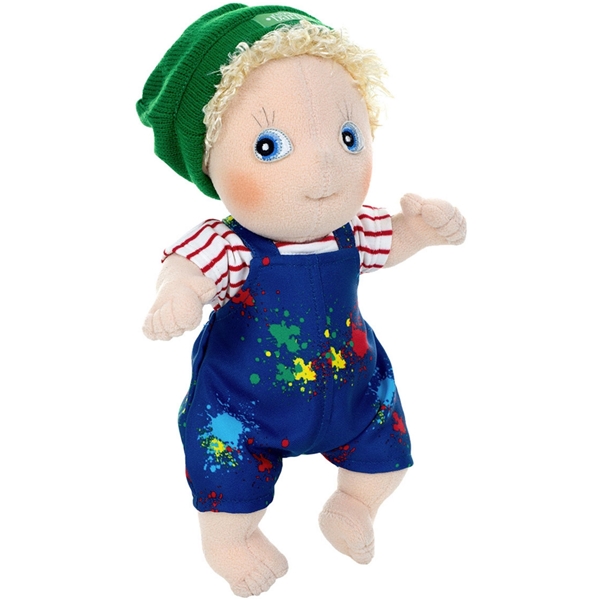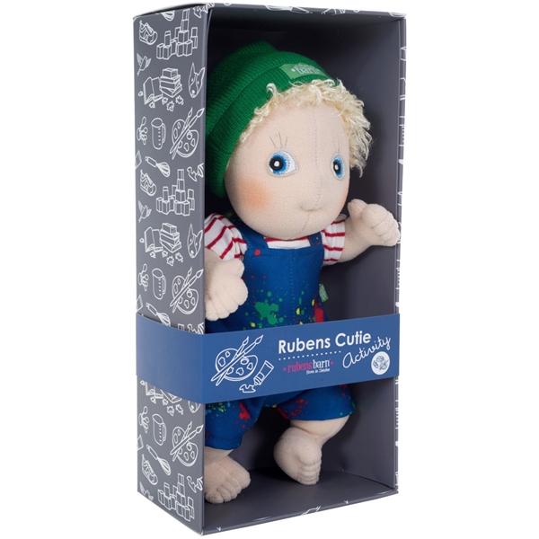 Dukken er 32 cm høj og har en blød krop, lys hud og blondt hår. Rubens Cutie-dukkerne er fremstillet af 100% polyesterfleece og har et 100% Global Recycled Standard (GRS) polyesterfyld.