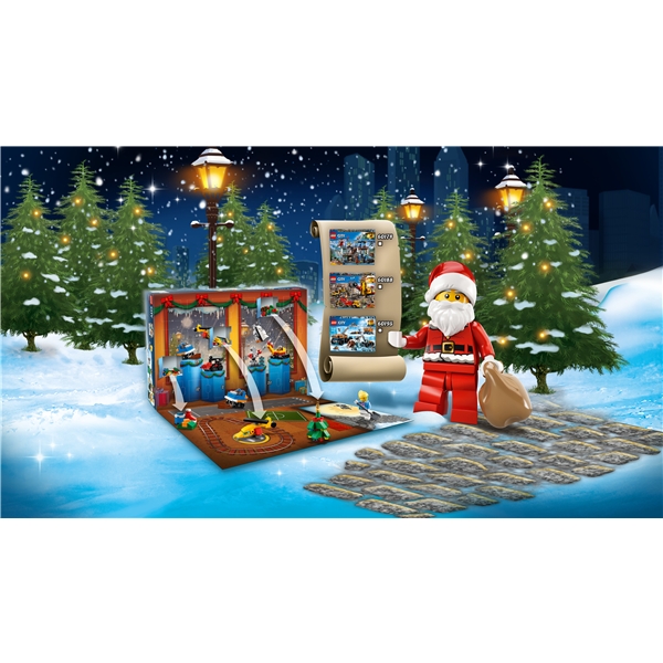 Nu kan du fejre jul med LEGO City-stemning. Julekalenderen indeholder 24 forskellige overraskelser, én til hver dag såsom blandt andet julemandens slæde, et peberkagehus, et juletræ, et fly, en snemand, kystvagtens helikopter og meget mere. LEGO City Julekalender har flere forskellige byggemuligheder og seks minifigurer. Udvid dine sæt eller påbegynd nye med de forskellige overraskelser som venter i LEGO City Julekalender.