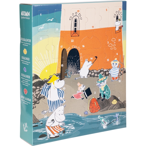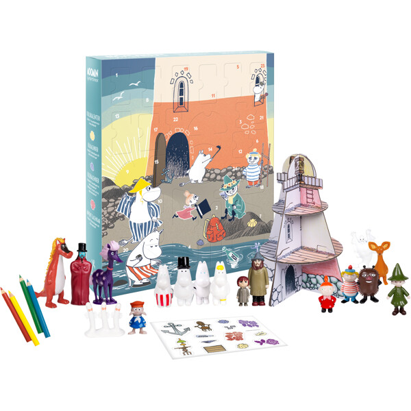 Temat for Mumins julekalender 2024 er fyret. Bag de 24 spændende låger gemmer sig 17 legetøjsfigurer, hvoraf to er helt nye. Derudover afslører lågerne delene til et monterbart fyr i karton, samt klistermærker og farveblyanter til dekoration af fyret. De nye figurer er fyrmesteren og homsen Toft, samt Primadonnaens hest i nye farver.