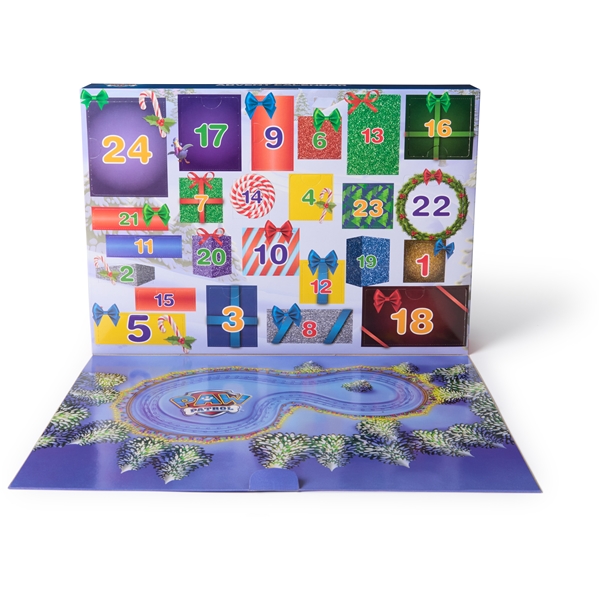 Bag hver låge er der små Paw Patrol-legetøj med juletema at opdage, som julemanden Chase, rensdyret Marshall og resten af hvalpene, dyrevenner og tilbehør!