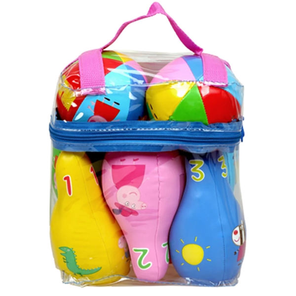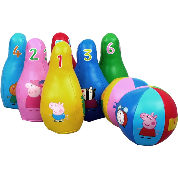 Gurli Gris Blødt Bowlingsæt er et farverigt bowlingsæt i et blødt materiale med seks kegler og to bowlingkugler. Alle dele har motiv af Gurli Gris, hendes venner og hendes familie.
