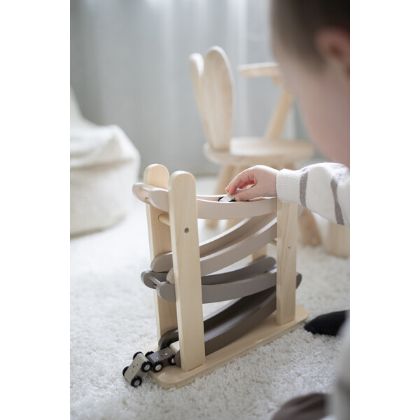 En kreativ og sjov bilbane i naturinspirerede farver til alle bilglade børn.