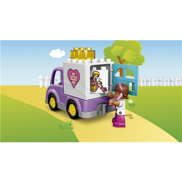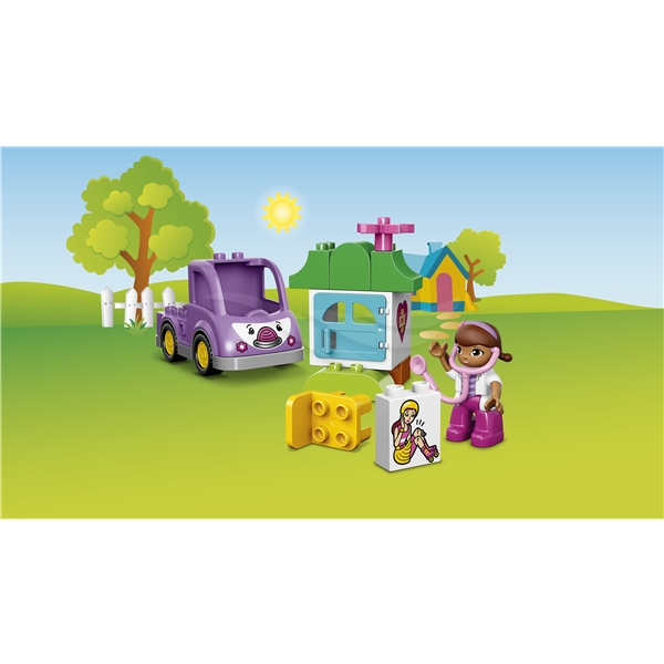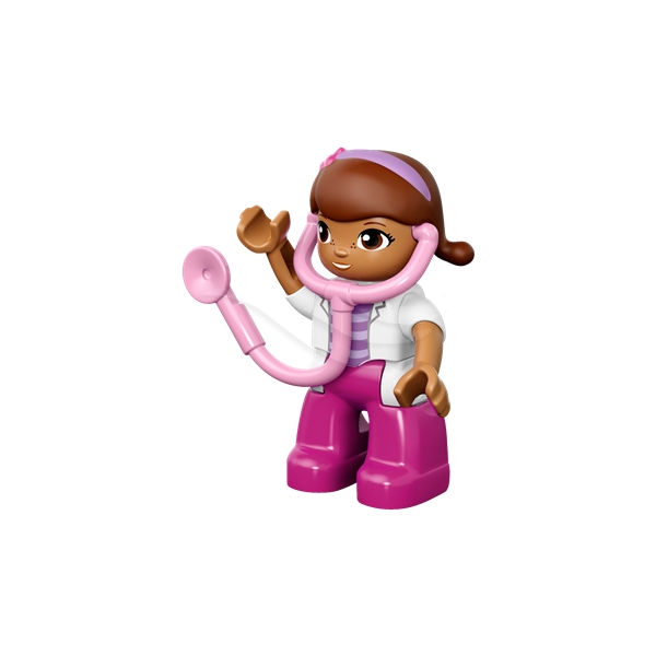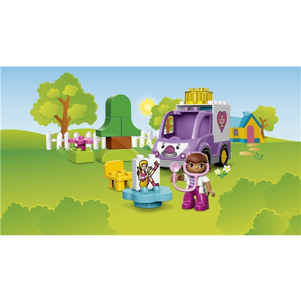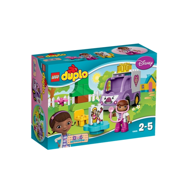 Skynd dig til undsætning med Doc McStuffins og Rosie! Daisy skadede sit ben da hun kørte på skateboard i haven. Stil den dekorerede klods med stakkels Daisy op på bordet, så Doc kan undersøge skaden med sit magiske stetoskop, og vend derefter på den dobbeltsidede klods for at gøre Daisys ben godt igen! Små børn vil elske ambulancen Rosie, der er let at samle, og med dette LEGO® DUPLO® Doc McStuffins™-sæt kan barnet hjælpe skadet legetøj overalt.10605 Doc McStuffins Ambulancen Rosie indeholder en LEGO® DUPLO®-figur: Doc McStuffins med stetoskop. Kombineres med 10606 Doc McStuffins Haveklinik for legetøj, som behøver yderligere behandling.10605 Doc McStuffins Ambulancen Rosie indeholder 16 dele.