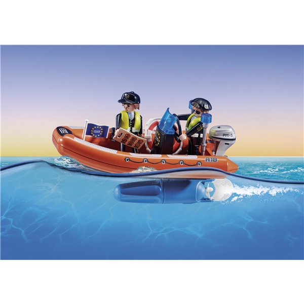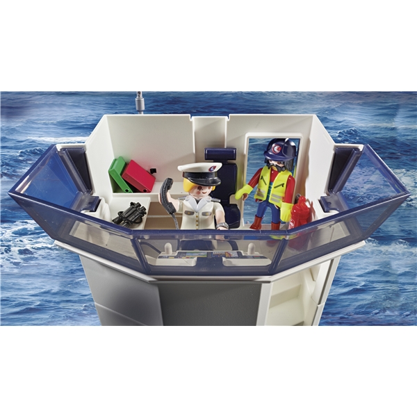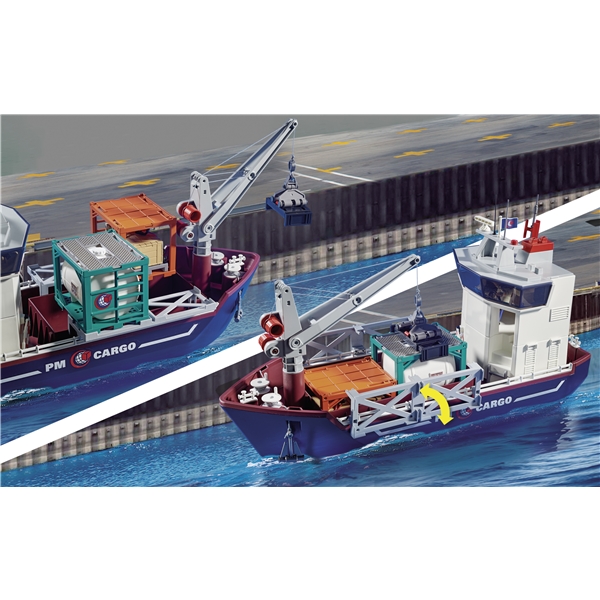 Havnen er porten til verden! Her ankommer der hver dag gods fra hele verden. Lige nu manøvreres et stort containerfartøj ind i havnebassinet, og det klarer kaptajnen med millimeterpræcision. Ombord på fartøjet findes flere store containere, som uden problemer kan løftes af med kranen. For at overholde den stramme tidsplan skal alt bare klappe, og kaptajnen og hendes besætning er heldigvis professionelle. Alle varer meddeles naturligvis korrekt til tolden. Tolderne står klar i toldbåden. Sjovt for alle der elsker at få logistikken til at gå op i en højere enhed! Legesættet indeholder fire Playmobil-figurer, et containerfartøj med kran, en toldbåd med påhængsmotor, container, kikkert, megafon og meget andet fint. Godsskibet kan flyde, og det kan udrustes med en undervandsmotor (7350).