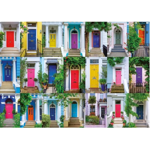 Educa Puslespil 1000 Brikker Doors Of Notting Hill er et sjovt puslespil med farverige døre fra Notting Hill.