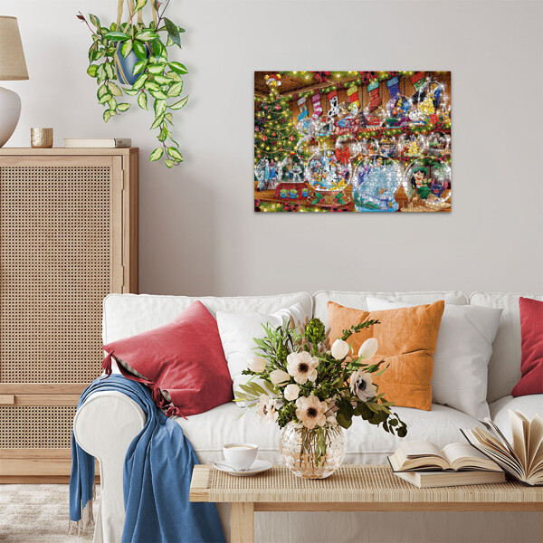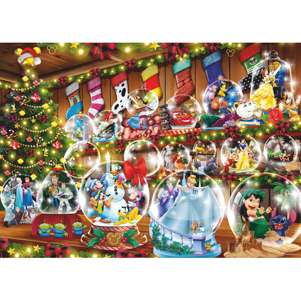 Puslespil 1000 Brikker Disney Christmas er et puslespil med julemotiv, hvor dine yndlingsfigurer fra Disney fremvises i fantastiske snekugler. Denne vidunderlige julebutik har et fantastisk udvalg af varer med både Nemo, Skønheden og Udyret, Lady og Vagabonden, Mickey Mouse og mange flere. Et sjovt og festligt puslespil for alle fans af Disney og Pixar!