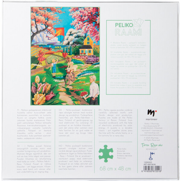 Indeholder puslespilsunderlaget Peliko Raami, som gør det nemt at bygge og indramme billedet i en standardramme på 50 x 70 cm.