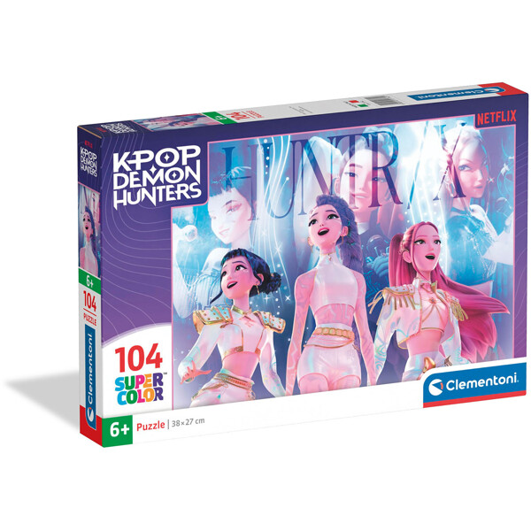 104-brikkers puslespil med motivet K pop Demon Hunters er perfekt til børn, der elsker farverige og fantasifulde billeder.
