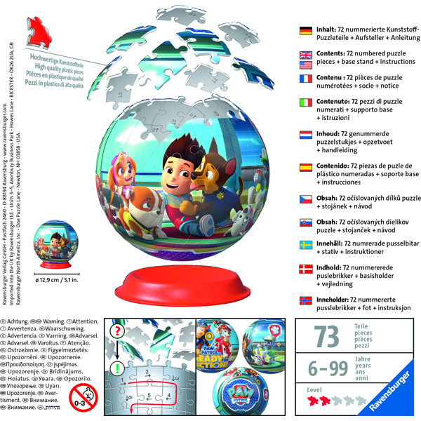 Puslespil 3D 72 Brikker Paw Patrol er et fint puslespil med de søde hvalpe fra Paw Patrol. Puslespilsbrikkerne er enkle at sætte fast, og puslespillet står stabilt på stativet.