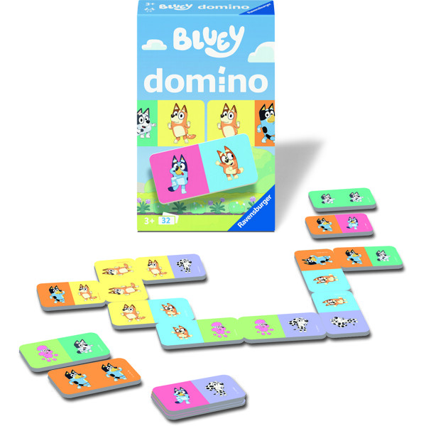 Dominobrikkerne har fine billeder af Bluey og hendes venner. Et klassisk og sjovt spil, der træner både koncentration og evnen til at genkende mønstre på en legende måde!