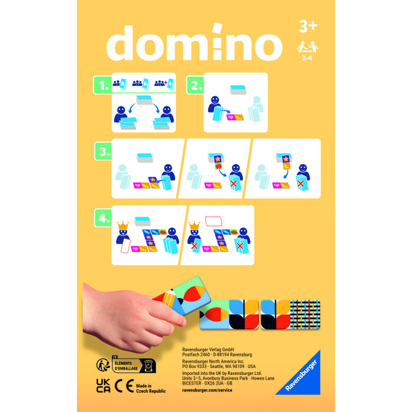 Spillerne skiftes til at lægge deres dominobrikker. En brik skal lægges, så billedet på den ene ende passer sammen med billedet på den brik, der allerede ligger der. Brikker må kun lægges i en af de to ender. Den, der først slipper af med alle sine brikker, vinder spillet!