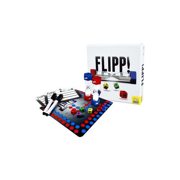 Flipp! er et sjovt familiespil som hæver pulsen og styrker lysten til at vinde! Dette snedige spil har enkle regler men er samtidig fantastisk sjovt og underholdende! I Flipp! er man to hold der spiller mod hinanden. Det ene hold kaster de medfølgende terninger med bogstaver på og forsøger derefter at danne et ord af bogstaverne - på tid! Bagefter skal det andet hold gætte hvilket ord det første hold har dannet på lige så lang tid som det tog at skrive det! Flipp! er et sjovt og hurtigt spil hvor det gælder om at tænke hurtigt og strategisk for at gøre det sværere for det andet hold at gætte hvilket ord man har dannet!
