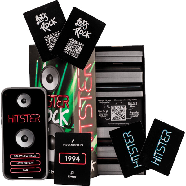 Hitster Rock med over 300 rocknumre fra blandede årstal. Placer rockhits i den rigtige rækkefølge på din tidslinje!Hitster er det perfekte festspil, hvor du skal bygge en tidslinje med over 70 års hits. Lyt til gamle og nye hits og skift til at placere dem i kronologisk rækkefølge på din tidslinje. Den spiller, der først samler 10 hits, vinder! Du behøver ikke at vide præcis, hvilket år sangen blev udgivet, men blot kunne placere sangen i forhold til de andre.Selvstændigt spil. Du behøver ikke have det første spil for at kunne spille dette, det fungerer som et selvstændigt spil, eller du kan bygge videre på dit andet med ekstra sange.Et familie-/festspil med enkle regler og masser af skøn musik!Indhold: 300 kort med musikhits og 30 hitsterkort for at øge dine chancer for at vinde.Spillet kræver en mobiltelefon med musikstreamingtjeneste (medfølger ikke). Scan kortene med Hitster-appen, så afspiller Spotify dem automatisk.Regelsprog (nordisk): Svensk, finsk, dansk, islandsk og norsk.Antal spillere: 2-10Spilletid: ca. 30-60 min