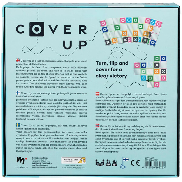 Familiespillet Cover Up er et sjovt logikspil, hvor man hurtigt skal genkende former og farver.