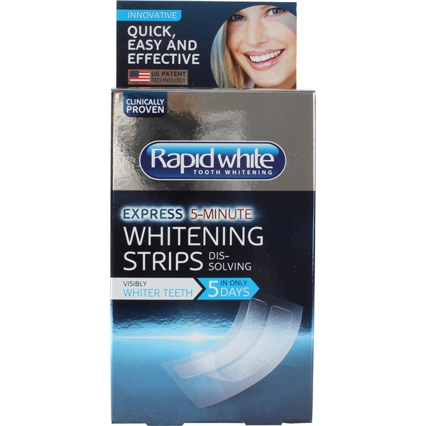 Rapid White Whitening Strips giver dig synligt hvidere tænder allerede efter 5 dage! Det maksimale resultat er synligt efter 1 uge. Den ultratynde, fleksible og transparente tape med mintsmag begynder øjeblikkeligt at gøre tænderne lysere og fjerner misfarvninger så snart den kommer i kontakt med tænderne. Med sin innovative selvopløsende tapeteknik tilbyder Rapid White en hurtig og effektiv afblegningsmetode - helt uden brintoverilte. Ved behandlingen afgiver tapen desuden en frisk smag af mint. Intet besvær med flydende geléer. Tapen fæstner ikke på læberne. Tapen glider ikke af tænderne. Minimalt med produktrester. Enkel håndtering. Selvopløsende.
